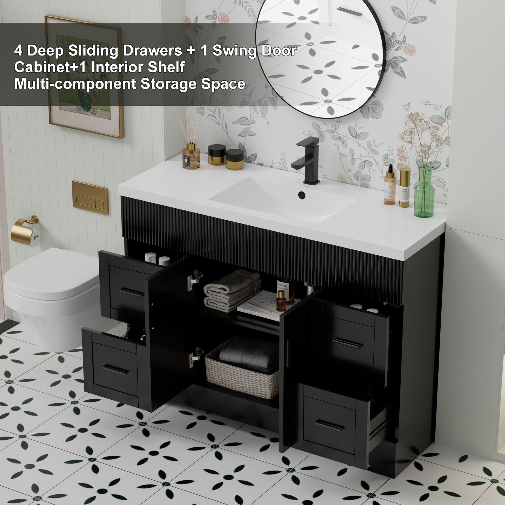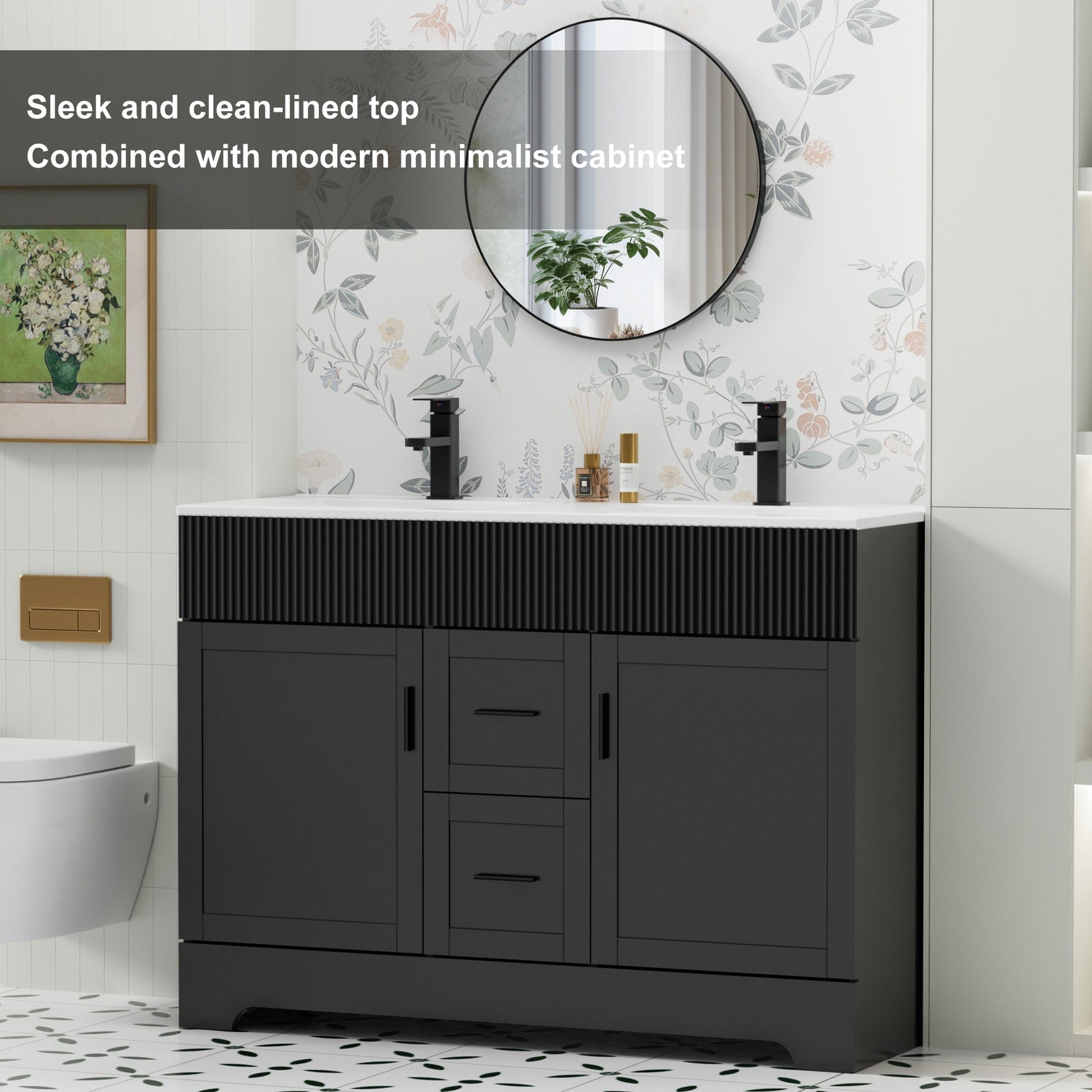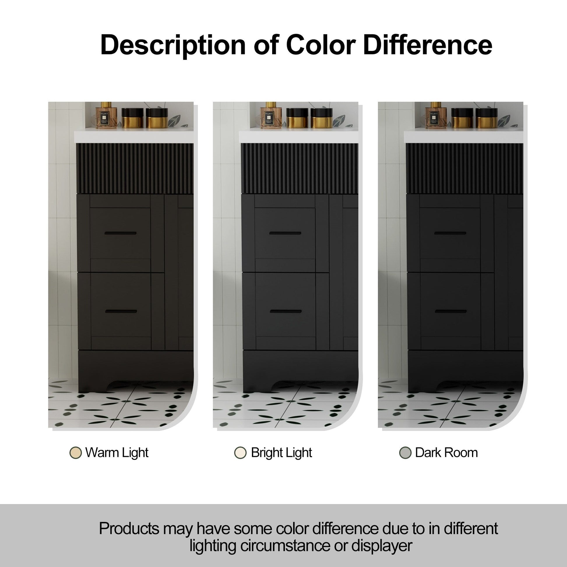 - Ensemble complet tout-en-un : comprend le meuble-lavabo, le lavabo, le robinet, la bonde de vidange, les tuyaux d’alimentation et la quincaillerie. Aucune pièce supplémentaire n’est nécessaire !