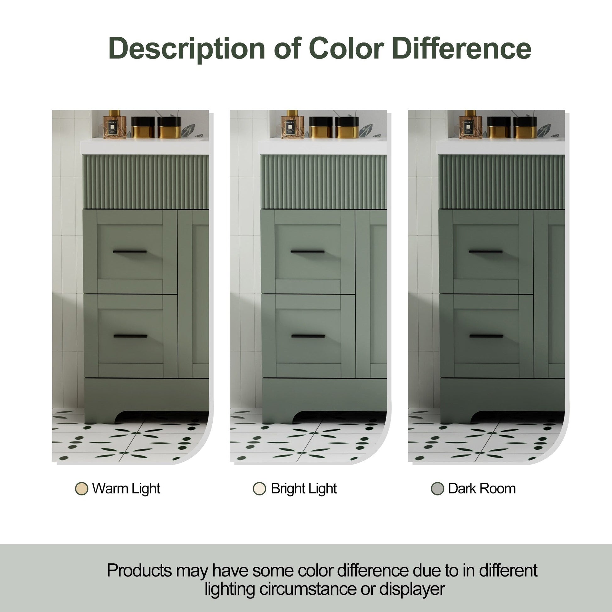 Modernisez votre salle de bain avec cet ensemble meuble-lavabo complet aux lignes ondulées élégantes. Disponible en 3 dimensions polyvalentes (76 cm, 91 cm et 122 cm) et 3 coloris tendance (blanc, vert et noir), ce meuble-lavabo sur pied allie style contemporain et espace de rangement exceptionnel. Sa structure en bois de qualité supérieure garantit sa durabilité, tandis que la vasque en céramique (76 cm et 91 cm) et la vasque légère en résine SMC (122 cm) sont faciles d'entretien.