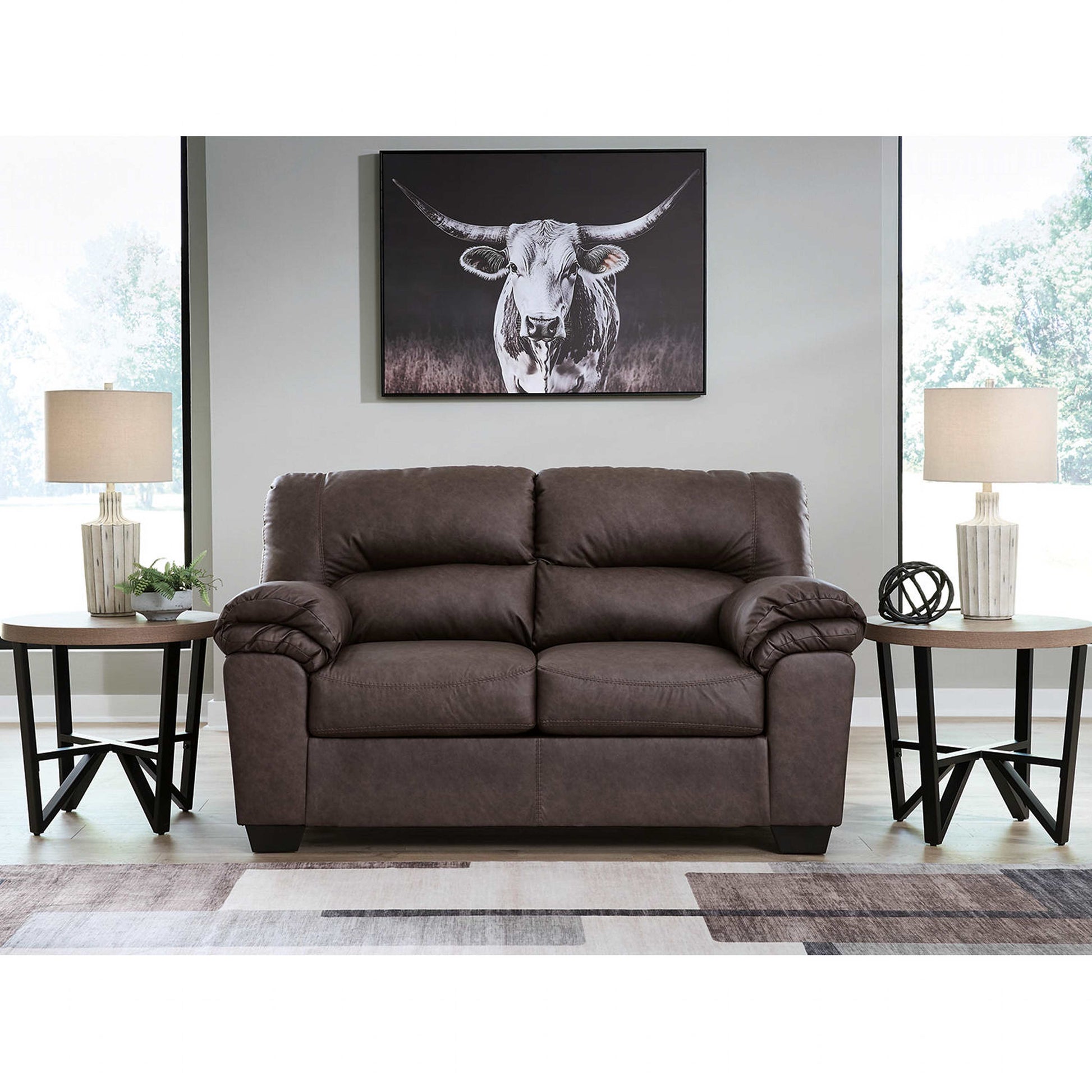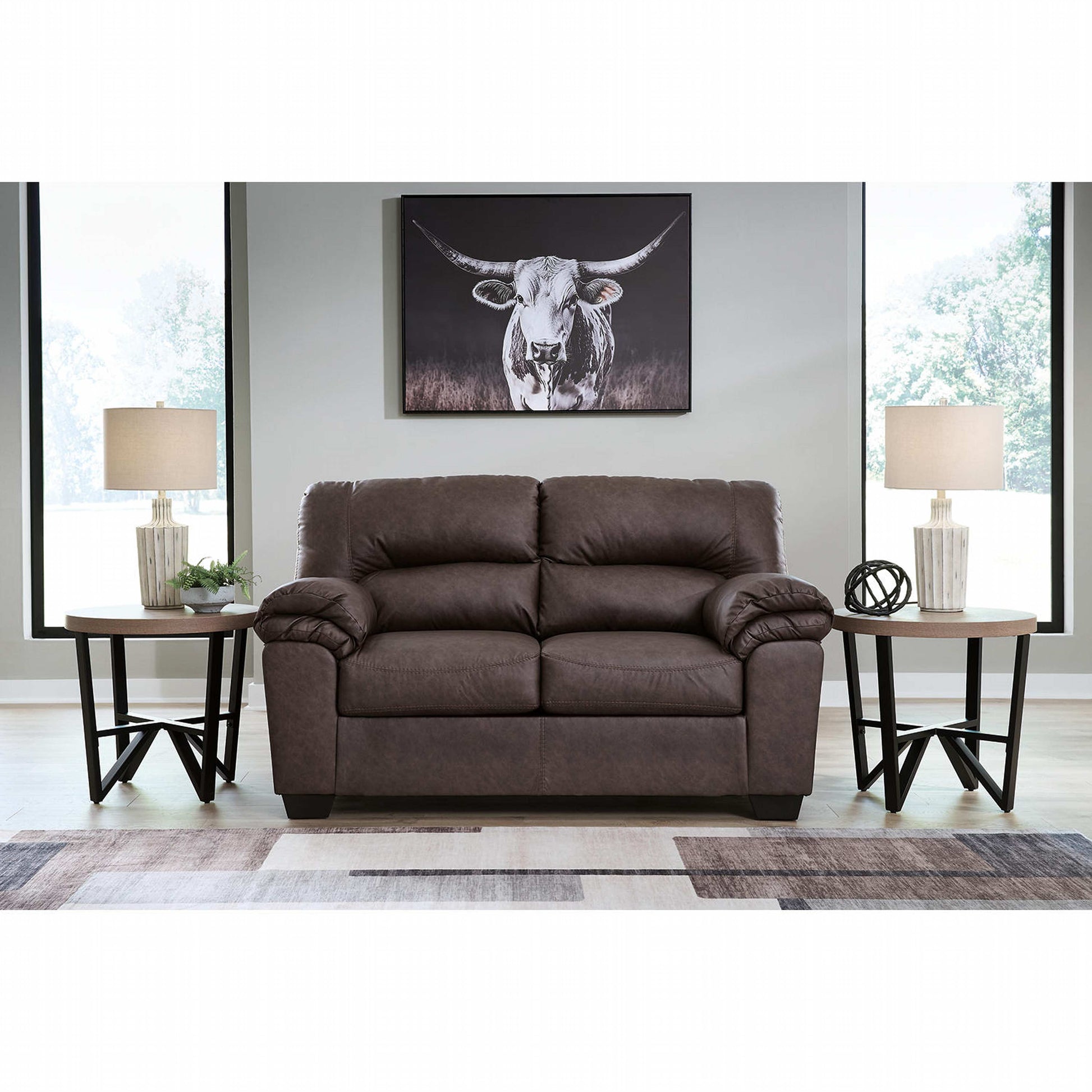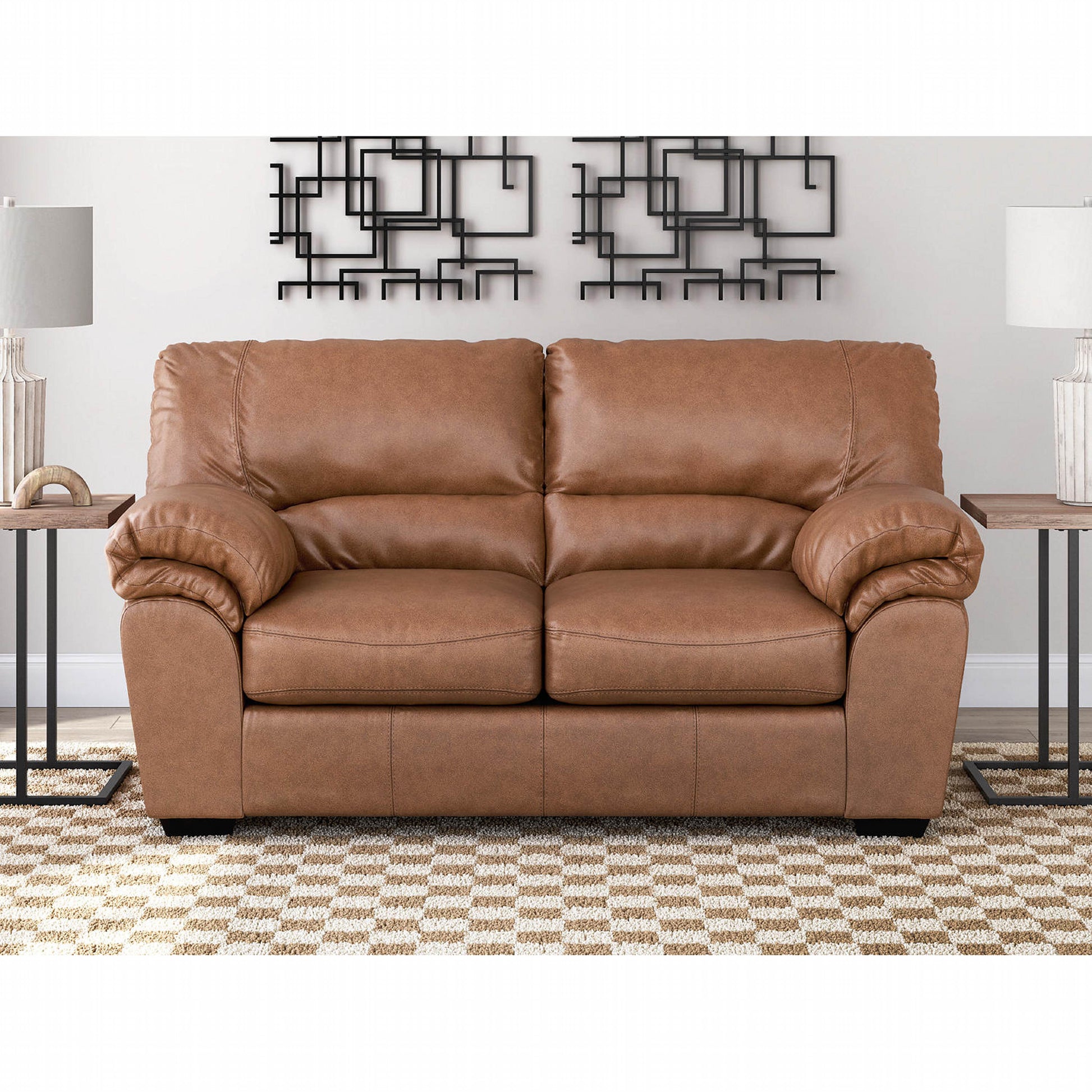 Le confort moderne n'a jamais été aussi élégant. Avec ses coussins d'une douceur et d'une résistance exceptionnelles, rehaussés de surpiqûres apparentes haute couture, le superbe canapé deux places Whitlock incarne le style contemporain et décontracté par excellence. Son similicuir couleur caramel offre une sensation haut de gamme et imite à la perfection le cuir véritable.