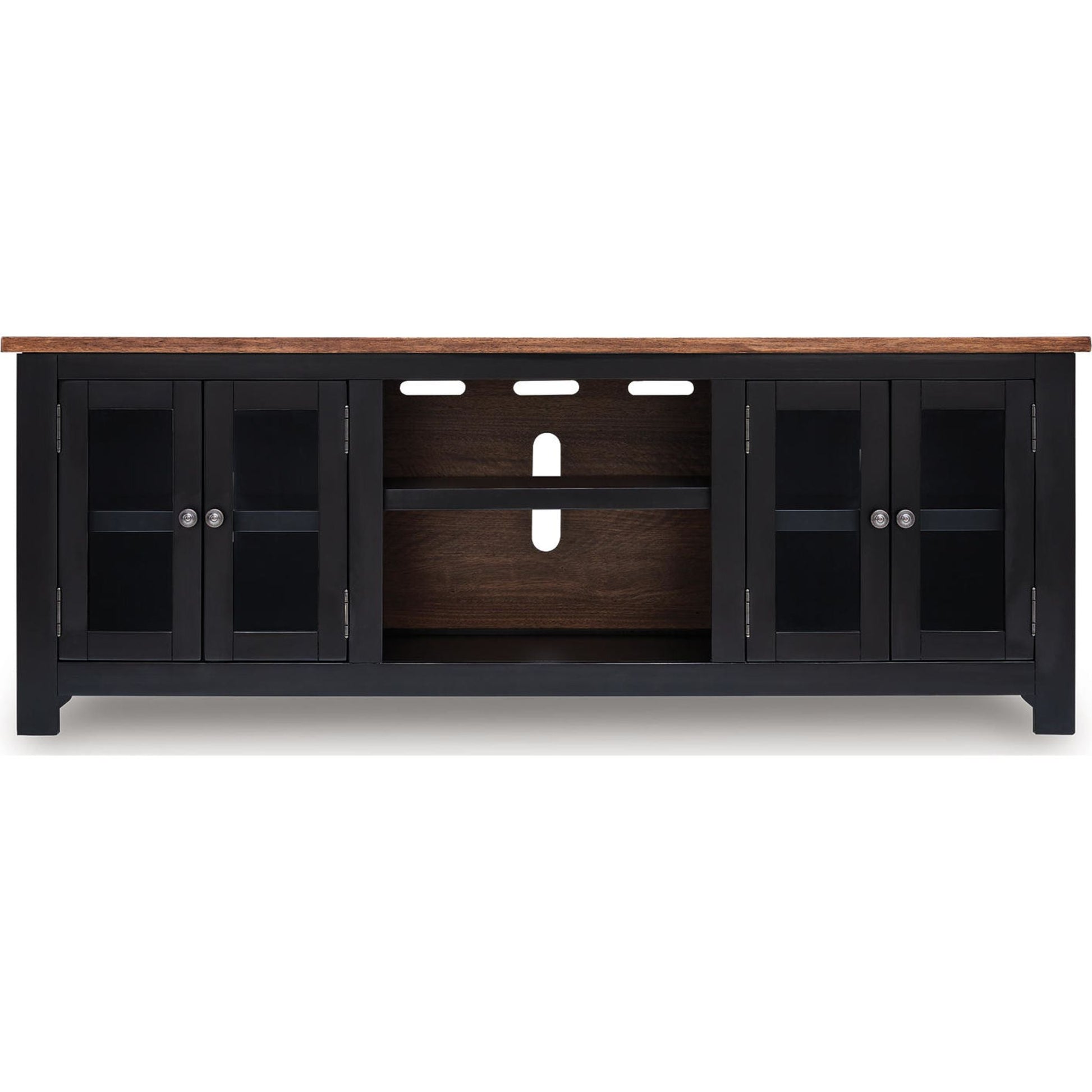 Rehaussez le style campagnard moderne avec le meuble TV Wildenauer. Sa silhouette robuste et son allure décontractée sont mises en valeur par une finition bicolore, associant un piètement noir satiné chaleureux à un plateau en placage de bois massif contrastant. Les placards à portes vitrées et étagères réglables offrent un grand espace de rangement pour vos appareils multimédias et électroniques. En retirant l'étagère du placard central, vous pouvez installer un insert de cheminée (vendu séparément), pour une ambiance chaleureuse et romantique instantanée. Que votre style soit vintage, champêtre ou éclectique, ce meuble TV apportera une touche authentique et chaleureuse à votre intérieur.