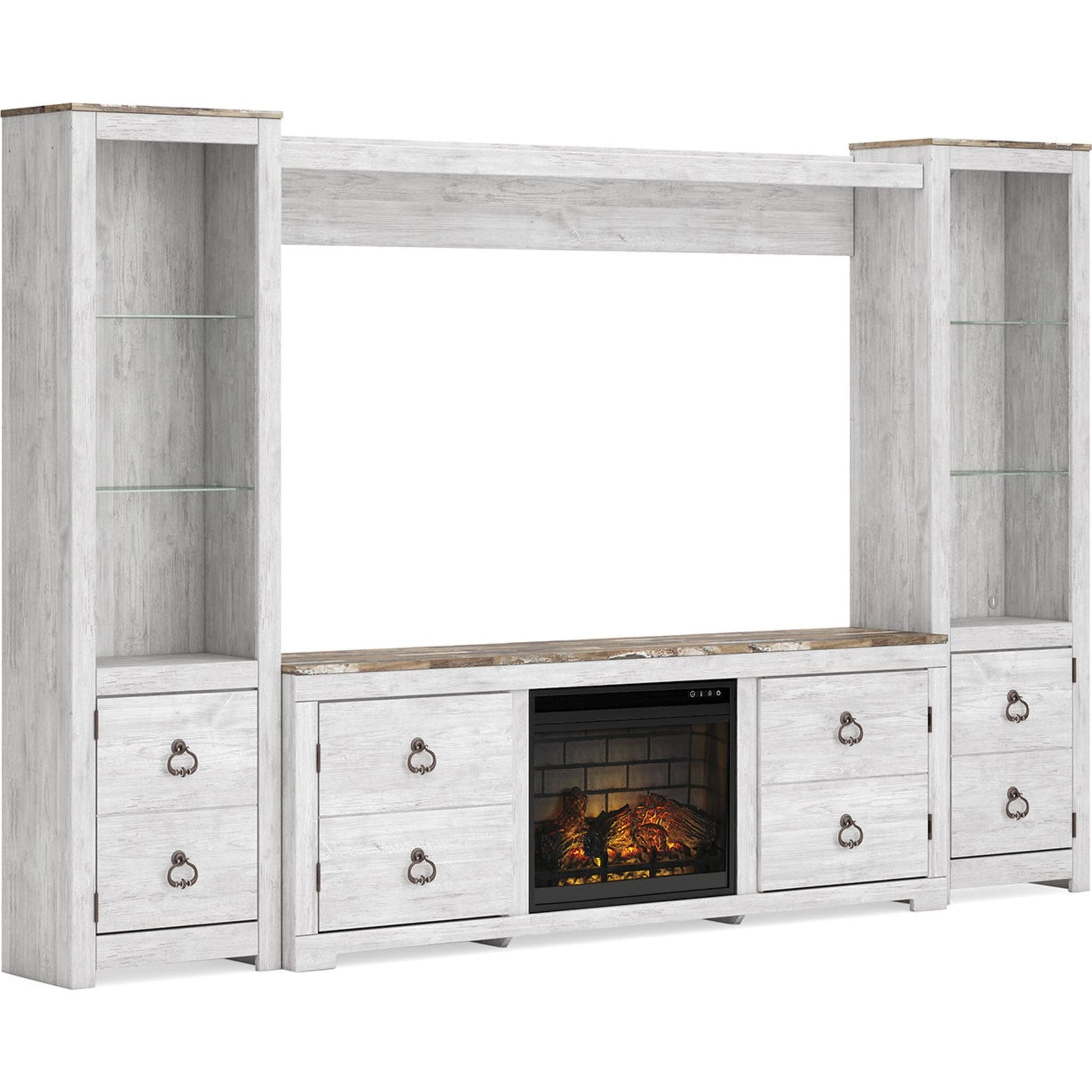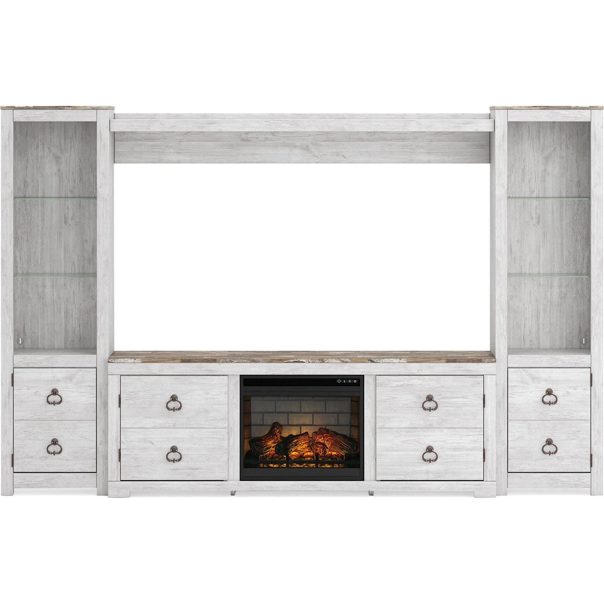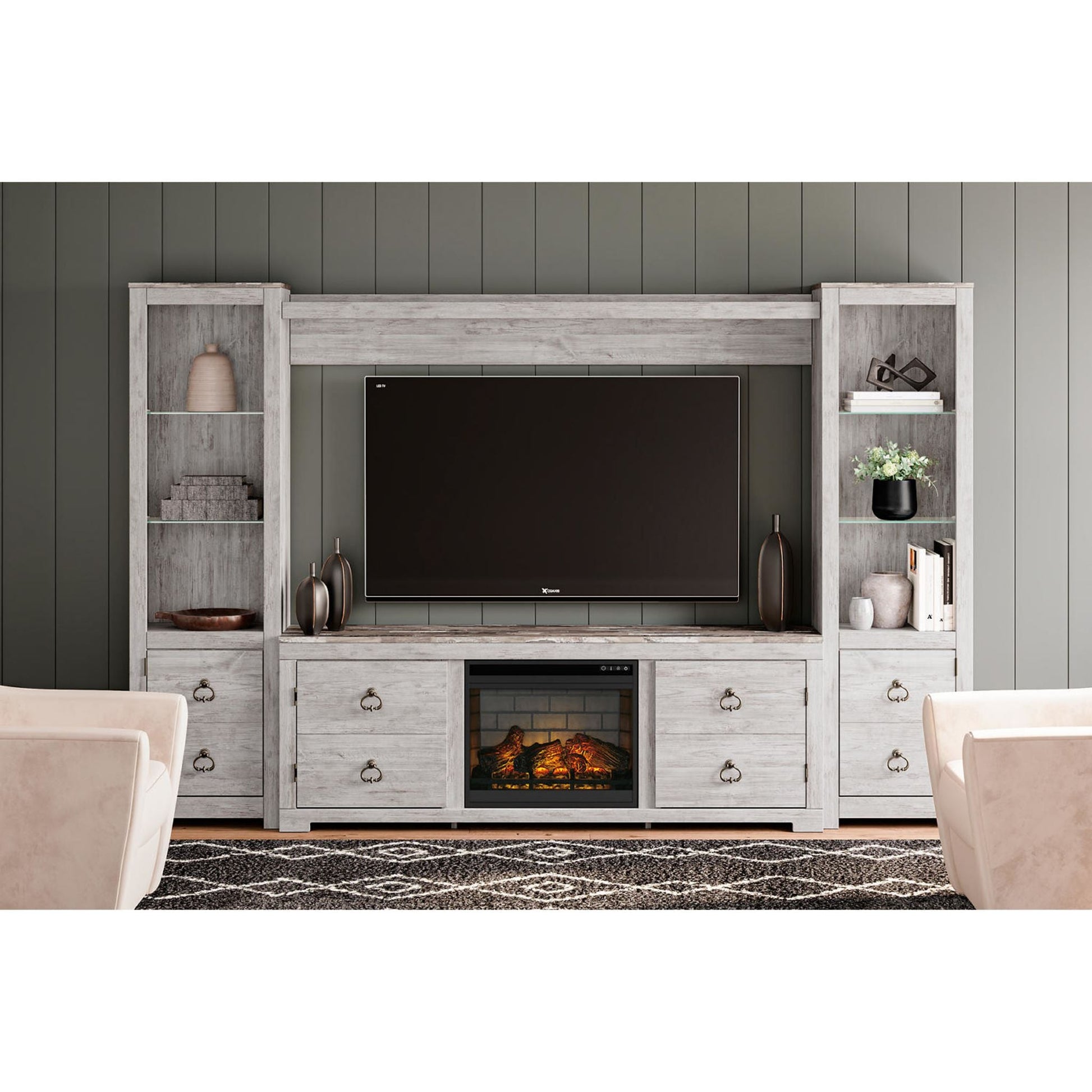 Le meuble TV Willowton avec son insert de cheminée électrique infrarouge est la pièce maîtresse idéale pour votre maison de bord de mer ou votre refuge d'inspiration shabby chic. Sa finition blanchie à la chaux est d'une douceur incomparable. Associée à son style planches, elle évoque le bois flotté et nous transporte instantanément au bord de la mer. Offrant de nombreuses possibilités, il dispose d'un espace généreux pour ranger et exposer vos objets. Son atout majeur : un insert de cheminée électrique infrarouge fonctionnant avec ou sans chauffage, doté de sept niveaux de température, d'une télécommande et d'une protection contre la surchauffe pour une sécurité accrue. Son entourage en fausses briques réfractaires, ses bûches réalistes et ses braises LED scintillantes apporteront une touche de romantisme à votre intérieur.