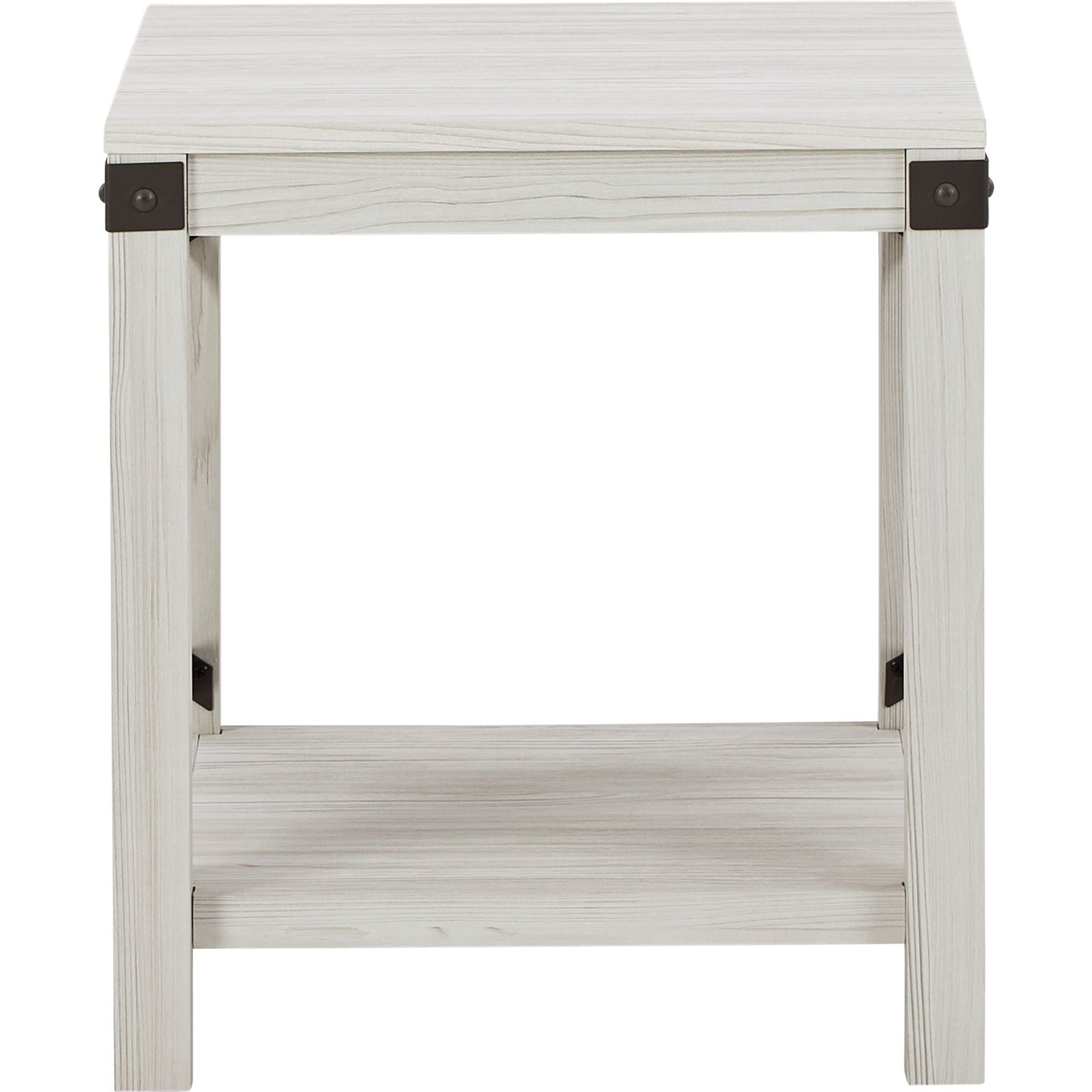 Recevez vos invités en toute simplicité grâce à la table d'appoint Bayflynn, au style décontracté et contemporain. Conçue pour les personnes modernes et exigeantes, son design minimaliste séduit par ses accents métalliques en forme de croix et son plateau stratifié à l'effet blanchi. Une étagère ouverte offre un espace généreux pour vos livres, paniers ou objets de décoration préférés.