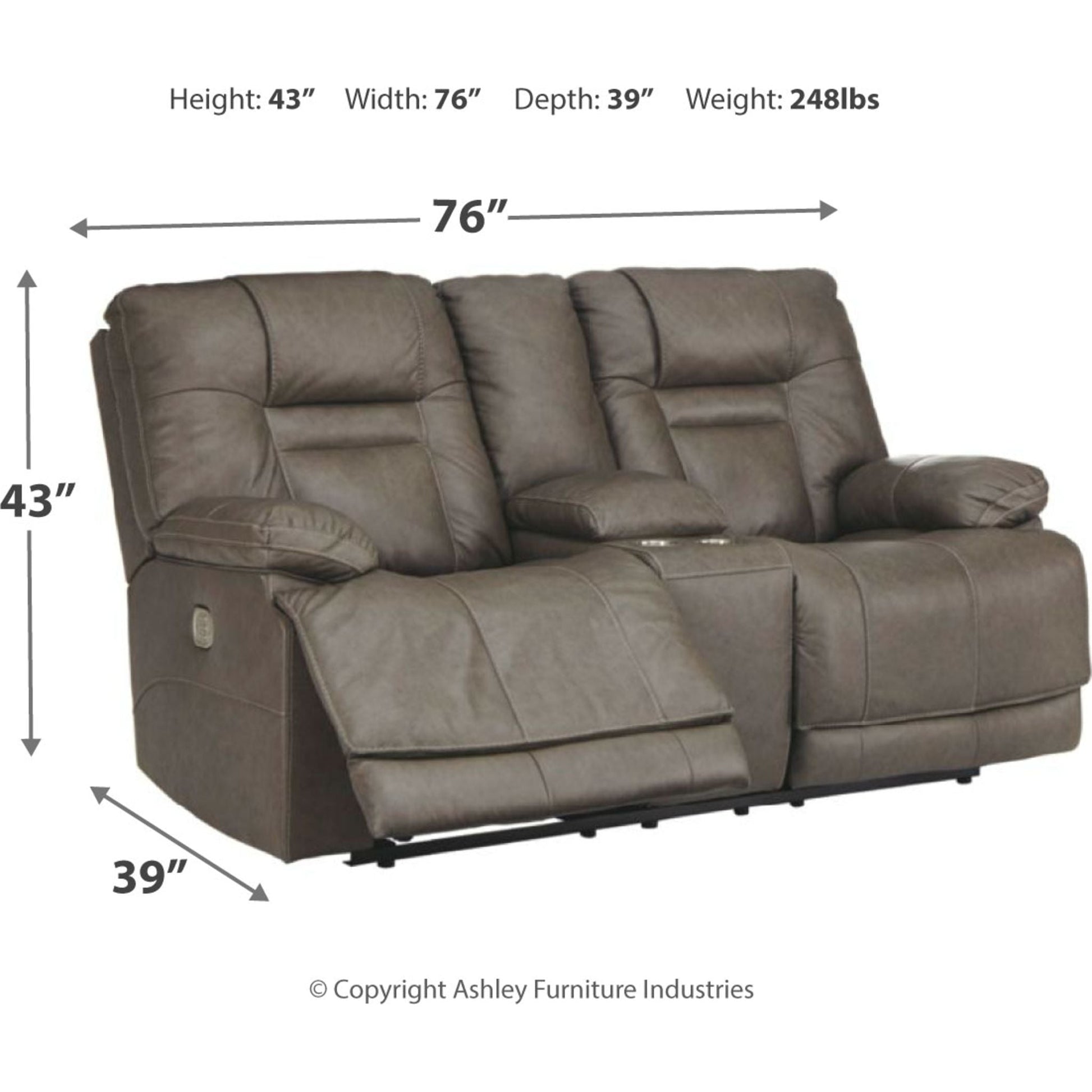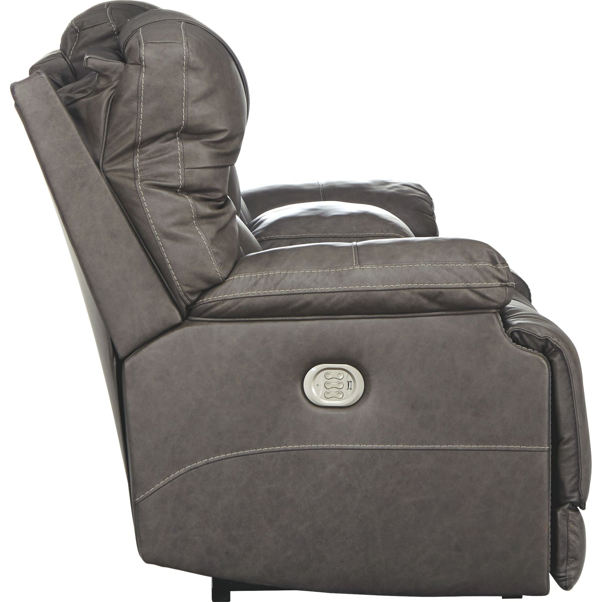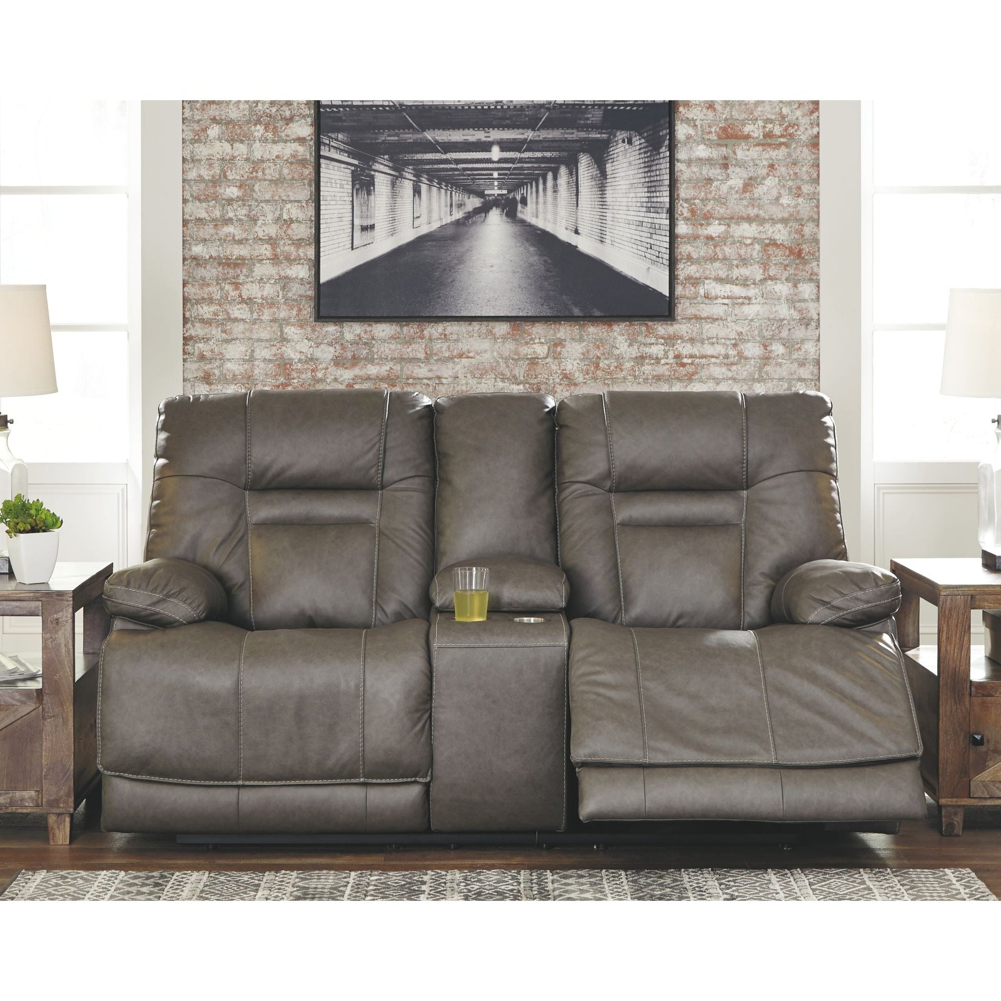 Imposant et audacieux, le canapé deux places inclinable électrique Wurstrow avec console et appuie-tête réglables électriques Easy View™ offre un confort optimal d'une simple pression sur un bouton. Ajustez facilement l'inclinaison, l'appuie-tête et le soutien lombaire selon vos préférences pour un confort maximal. De plus, grâce aux ports de chargement USB pratiques, vous pouvez recharger vos téléphones portables ou ordinateurs portables sans avoir à vous lever. Le cuir véritable est associé à un similicuir parfaitement assorti pour un luxe abordable. Les détails du revêtement couleur fumée créent un style rustique idéal pour un intérieur moderne ou décontracté. La console centrale offre un espace de rangement dissimulé sous l'accoudoir central, parfait pour ranger les télécommandes. Vous apprécierez de garder vos boissons à portée de main grâce aux deux porte-gobelets en acier inoxydable.