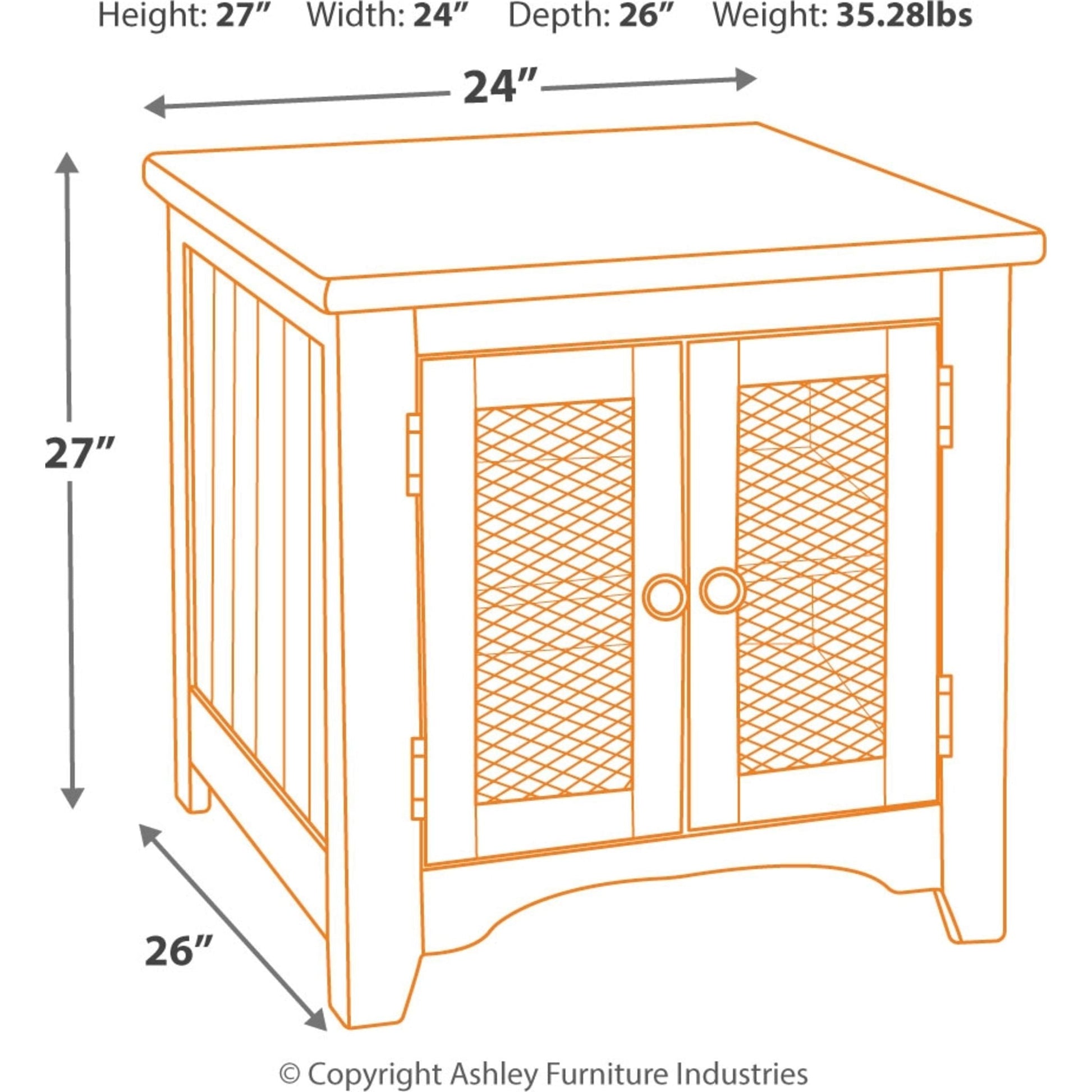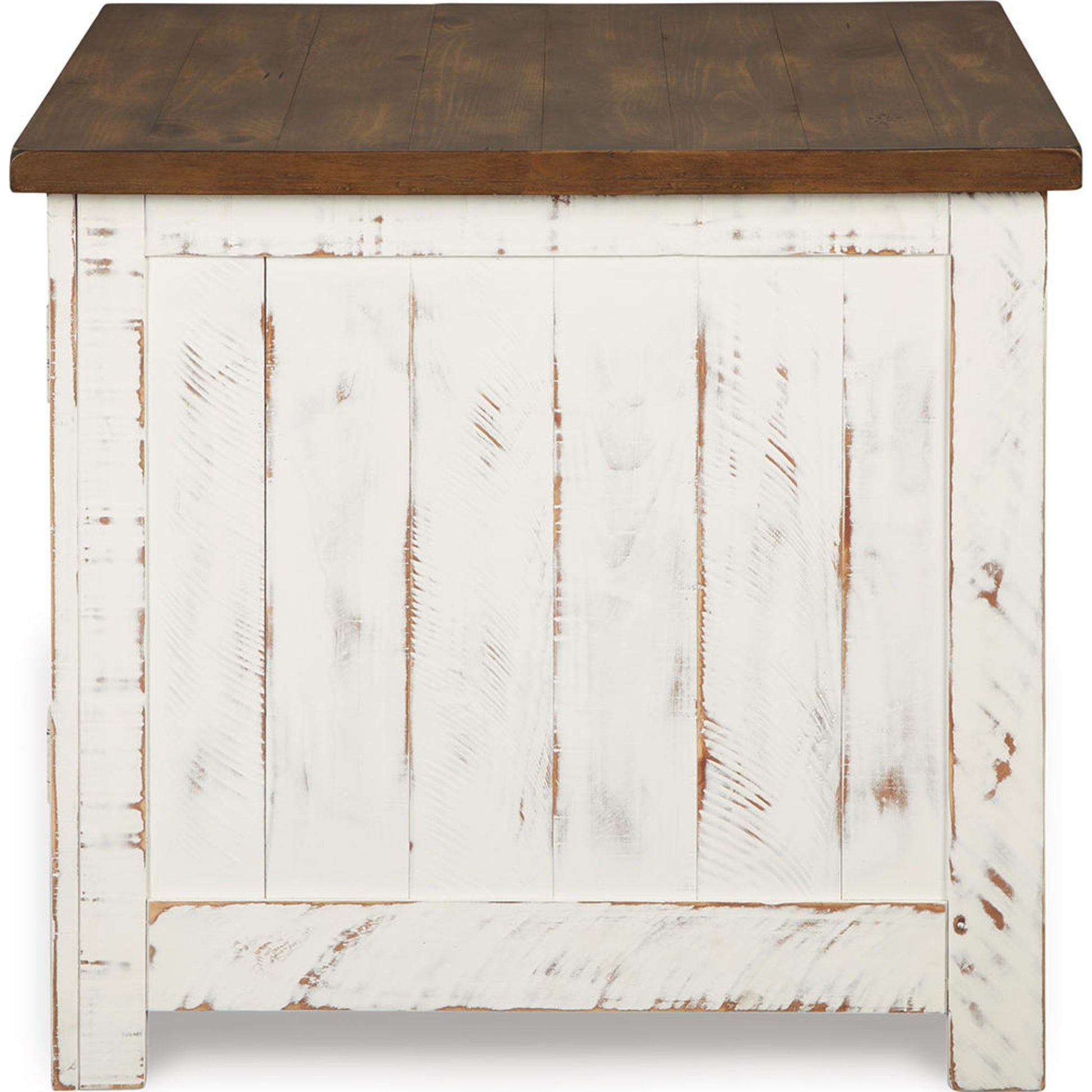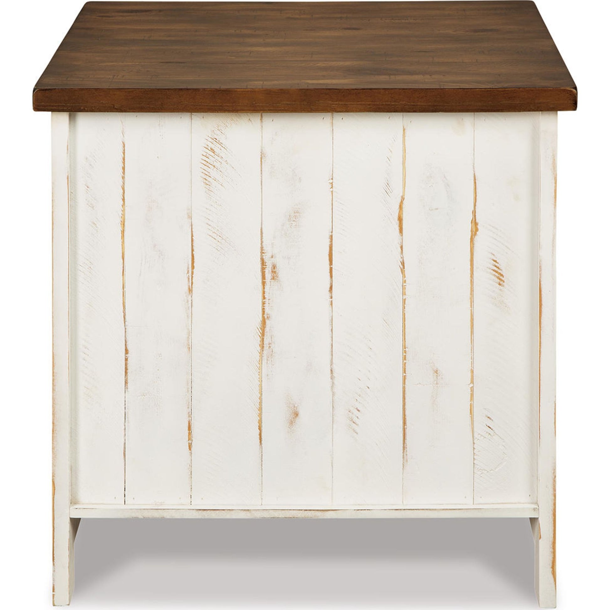 Un véritable coup de cœur. Avec sa finition bicolore associant un blanc vieilli à une teinte pin naturel patinée, la table d'appoint Wystfield sublime le style rustique d'une maison de campagne. Son charme est rehaussé par des étagères de rangement visibles à travers les portes d'armoire ornées de grilles métalliques.
