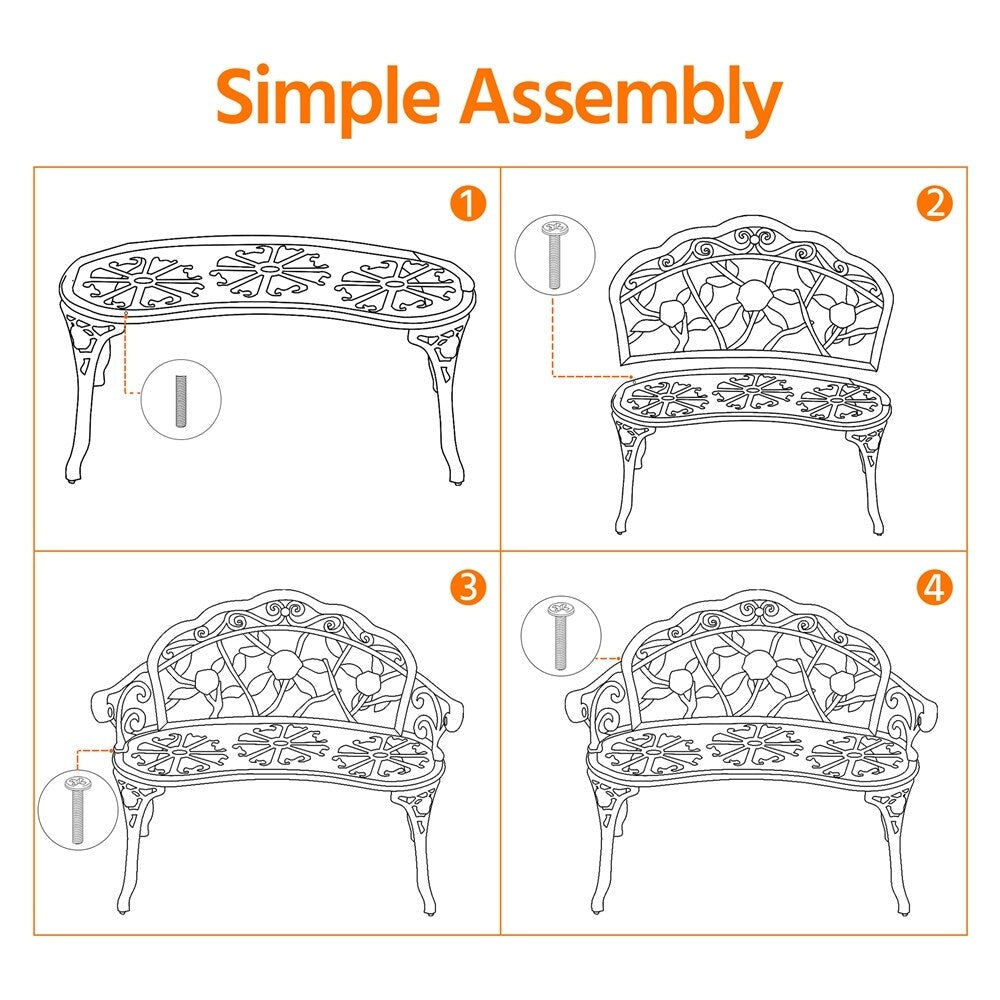 - Banc d'extérieur polyvalent : Adapté à tous les environnements extérieurs, ce banc de jardin en métal est du plus bel effet dans votre cour, les parcs, les jardins ou même dans un café en plein air de style antique.