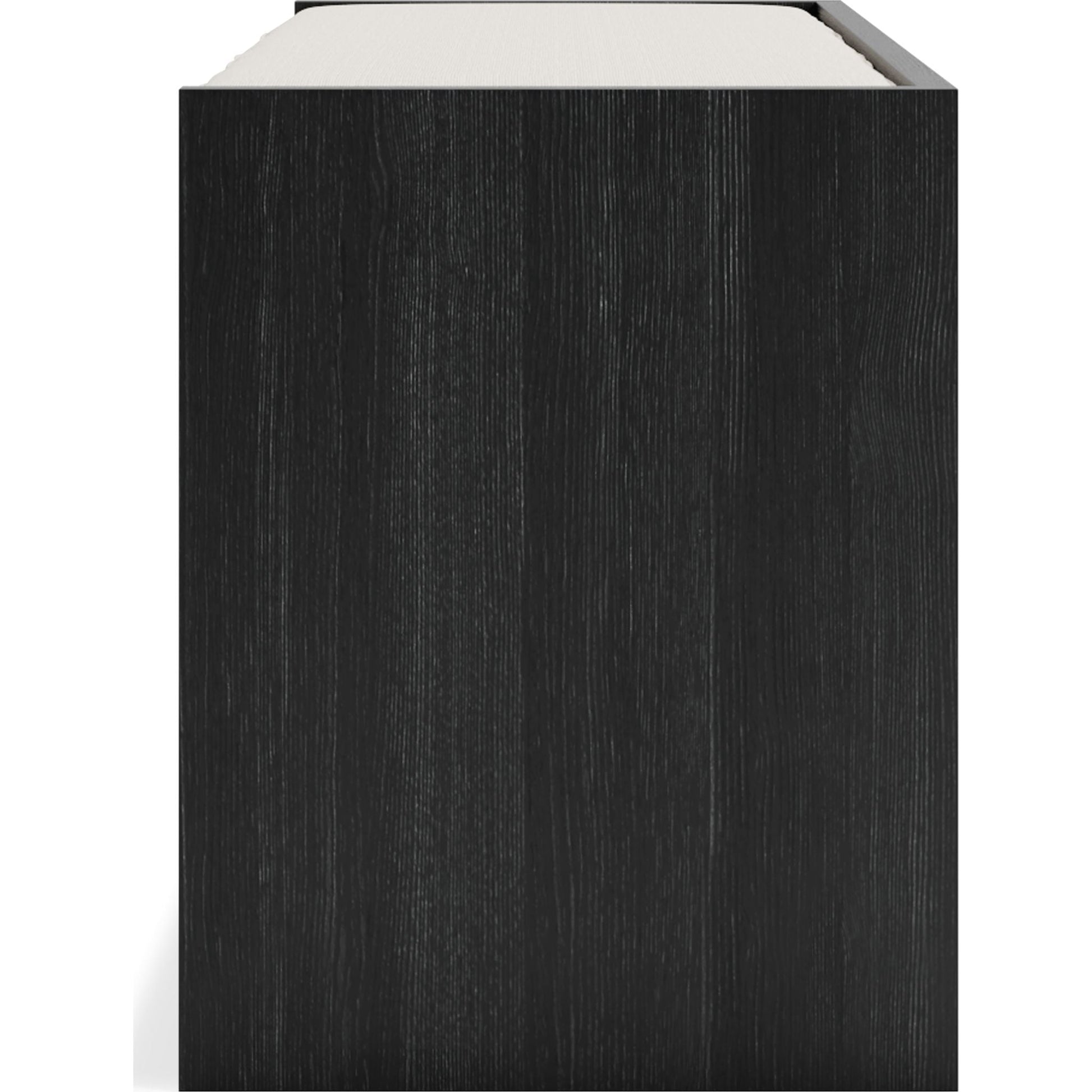 Avec son profil épuré, le banc de rangement Yarlow trouve sa place partout. Sa finition en bois noirci, rehaussée d'un grain texturé grisé, lui confère une touche de modernité. Revêtu d'un tissu gris clair, son assise réversible offre un confort moelleux grâce à son rembourrage en mousse. Trois compartiments de rangement ouverts allient fonctionnalité et esthétique, faisant de ce meuble un incontournable pour les petits espaces.