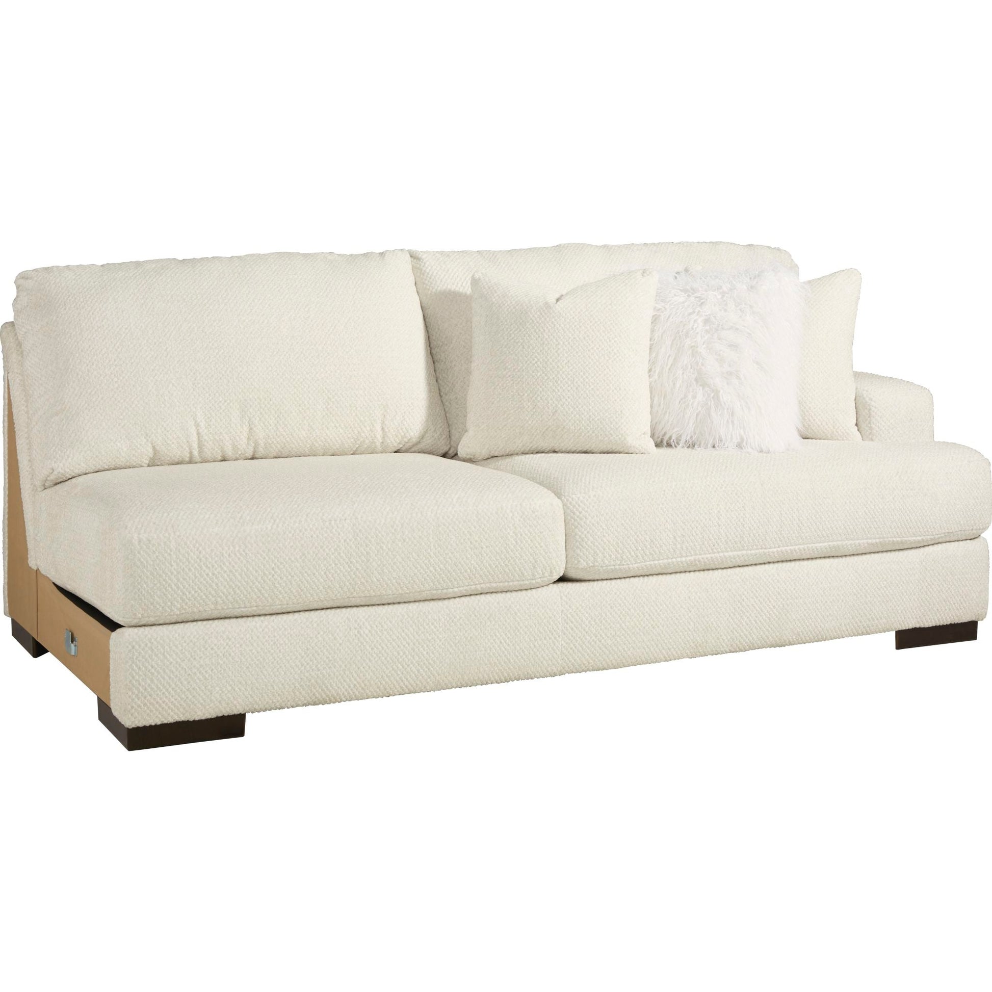 Le canapé d'angle Zada, avec sa microfibre d'une douceur incomparable, offre un confort et un style exceptionnels. Son design contemporain chaleureux et accueillant se révèle pleinement grâce à ses larges accoudoirs et ses lignes épurées. Des coussins décoratifs en fausse fourrure apportent une touche glamour. Un pouf assorti en fausse fourrure est disponible séparément.