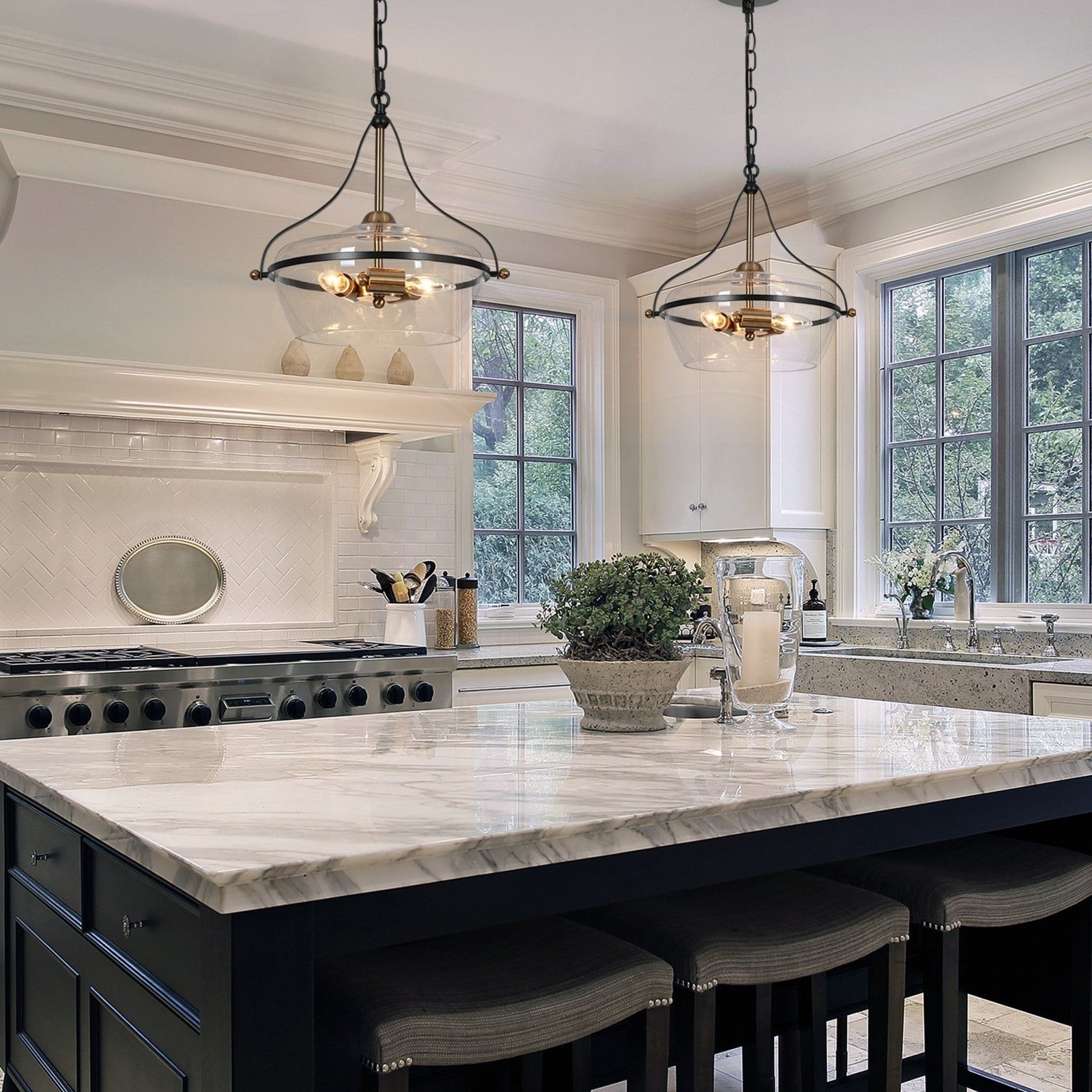Lustre Zelena moderne de style ferme, noir et or, suspension en verre à 3 lumières pour îlot de cuisine ou salle à manger